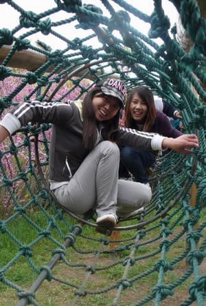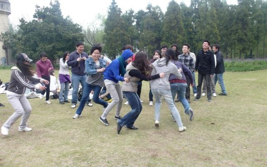 大巴依崇明长江大桥缓缓行驶,开阔的江面,先进的风力发电,令在座的每一位同学都叹为观止。随后,我们驱车前往东平国家森林公园,一进园,参天的杉树让人错以为踏入了茂密丛林之中,远处若隐若现的麋鹿,枝头如水晶般剔透的露水,山坡上嬉戏的羊群……同学们有的赶紧拿出相机,把这片城市中难得一见的翠绿捕捉在镜头里,有的则连相机都来不及举起,先闭上眼睛来一个长长的深呼吸——雨后的水杉林可是千金难买的“天然氧吧”。雨后的森林公园多了几分羞涩与恬静,清新的气息似乎为自然重新换上了绿意盎然的新装。我们的到访恰似为本已芬芳的画卷锦上添花,鸟儿似是听懂我们的欢快,相互叽叽喳喳的给予回应与欢迎。就这样,赏着路旁不知名的野花,追扑着偶尔飞过的蝴蝶,我们走出了浓郁的水杉林,眼前立刻呈现了一片明镜般的湖面。放眼一望,远处是缭绕着水汽的森林,近前是澄碧透彻的湖光,这仙境般的画面秀丽却又不乏野性,真仿佛是天上人间。置身其中,古人那“天人合一”的至高境界恐怕也不过如此。这样的美景哪肯错过!我们走迷宫,开赛车,过独木桥,钻麻网,玩各种各样刺激挑战的拓展游戏,同学们相互鼓励、支持。接二连三的有同学挑战走绳索,走的同学一丝不苟,在一边围看的同学更是紧张,一双双鼓舞人心的眼神,一个个随时准备上前保护的姿态,一张张精彩瞬间的笑脸,那个早已在终点等候接应的双手。这就是我们,没有任何顾虑的投入游戏,因为前、后、左、右都有支持的身影与期待,有来自四方的支持与欢笑。