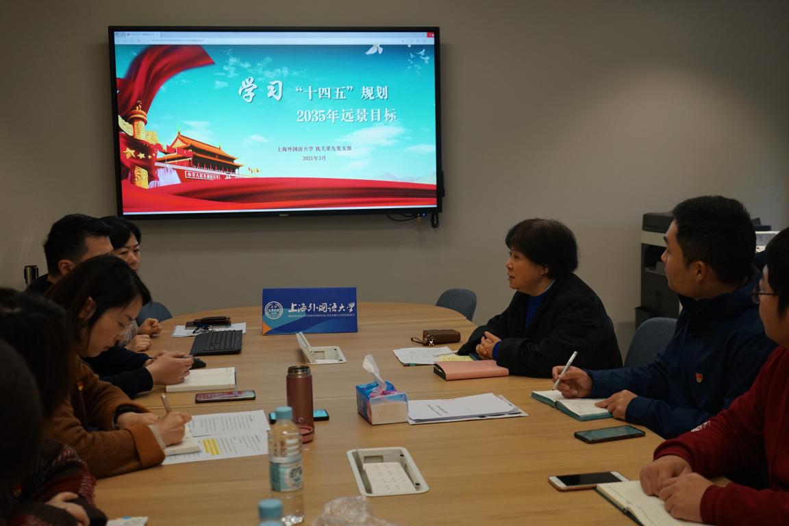 党支部组织委员张蓉同志将支委会讨论草拟的《机关第九党支部 2021 年党建工作计划》提交全体党员审议,对相关内容进行介绍说明。持续深入学习习近平新时代中国特色社会主义思想,持续深入巩固“不忘初心、牢记使命”主题教育成果。深入落实《中共上海外国语大学委员会迎接建党100周年行动方案》《中共上海外国语大学委员会关于开展党史学习教育的实施方案》,制定《机关第九党支部开展党史学习教育实施方案》,将党史学习教育融入学校正在推进的课程思政建设工作,做好多语种版《习近平谈治国理政》“三进”试点高校建设工作。丰富党建工作模式,做实党支部建设工作。将党支部工作与学校中心工作和立德树人根本任务相结合,利用微信公众号、官网等媒介,搭建研究生导师队伍建设、研究生培养、师德师风建设的宣传平台,提升党支部党建工作实效。重视基层调研,深入践行“一线规则”。主动听取院系的意见建议,进一步提高服务意识和服务水平,及时了解院系师生需求,深入分析、寻找对策、跟踪解决。定期开展干部能力提升专题培训,提升党员能力素质。