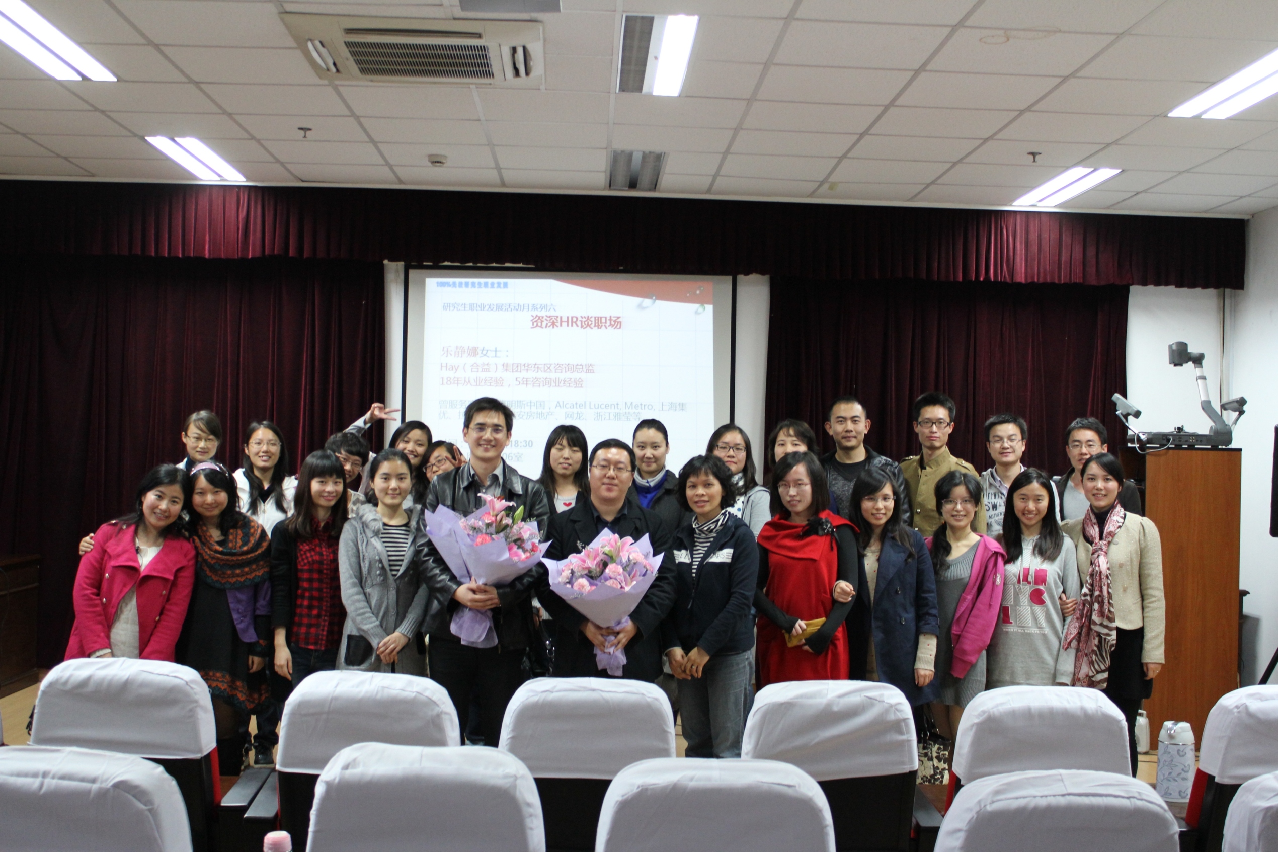 整个活动的现场可谓笑声阵阵、高潮迭起,两位学长不仅自己的事业经营地有声有色,也把整个活动现场的气氛调动地十分活跃,既向我们展现了其专业的一面,同时也展现出他们亲切诚恳的一面。学长们的过去和现在,其实也是我们的现在和将来,他们的经历和建议将是我们一直珍藏和玩味的宝藏。
