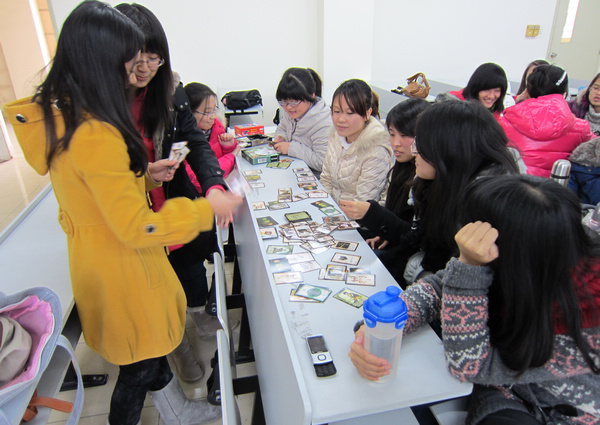 下午两点,我们班在四教楼343教室展开了激烈的“厮杀”:桌游,三国杀、八十分、狼人杀、德国心脏病、五子棋等一应俱全。趣味运动会三国杀和八十分的冠军选手都是三班的同学,所以此次活动的精彩程度可想而知!几位种子选手也耐心地给不懂行的选手解释各种牌法,游戏很快就开始了。