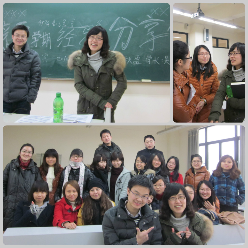 绵绵的春雨浇不灭语言学一班同学对上外的热爱,对英语学习的执着,对新学期新生活的憧憬和对未来美好生活的向往,2012年2月24日下午一点,语言学一班的同学们准时到达四教楼339教室,参加班委组织的新学期经验分享交流会。我们的嘉宾2010级学姐胡秋盈和学长吴明会在这里为我们答疑解惑,并毫无保留的与大家分享了学习,论文开题,以及社会实践等方面的经验和教训,智慧的花火在这里碰撞,学长学姐的谆谆教导铭记在我们心中,在这激情燃烧的青春岁月,语言学一班的同学已准备好全力上好这最后一学期的课,为论文写作打下基础,为未来加上砝码,并尽情享受最后几个月的松江美好时光。