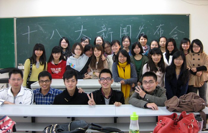 为庆祝中国共产党第十八次全国代表大会的召开,研究生部2012级口译学2班结合专业特色,组织了模拟十八大新闻发布会活动,让同学们在学习十八大精神的同时提高口译专业能力,该活动收到了良好的效果。