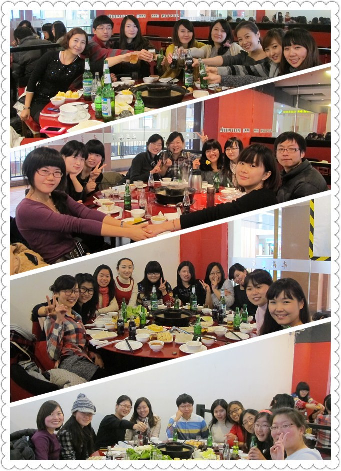 一周的时间很快过去,经过充分地预热,5班迎来了筹备已久的尾牙狂欢。28号全班近40人来到开元地中海,热热闹闹地吃起了火锅。席间大家卸下了课业负担,尽情享受着友情的温暖,欢声笑语,好不开心。班级里的仅有的几位男性同胞更是拿出了奉献精神,各种搞怪,爆笑全场。