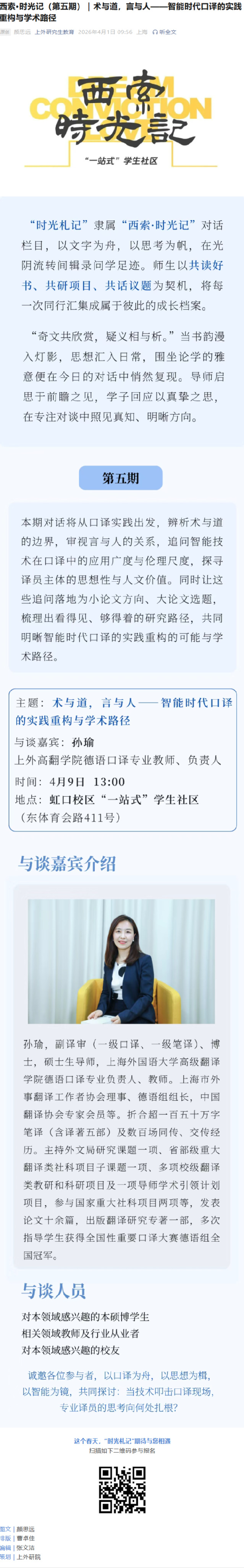 西索·时光记(第五期)|术与道,言与人——智能时代口译的实践重构与学术路径