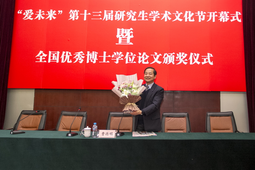 最后,曹校长与在座师生分享了他求学、治学的心得和体会。他坦言道,每个人在每个阶段要根据时间、地点做本阶段应做的事。正如周作人先生所说,人的生命就像自然的四季:小学和中学是人生的春天,播撒希望的种子;大学是人生的夏天,万物茂盛,欣欣向荣,要勤奋学习,继续耕耘;毕业后到中年是人生的秋天,付出的劳动有了一定的收获;老年是人生的冬天,要注重养生保健。人生的季节跟自然的季节一样,春天做春天该做的事,夏天做夏天该做的事。一切要顺其自然,要结合自身条件,明确方向,找准定位。大学是人生最美好的季节,是成长的黄金阶段,他希望同学们能拥有强大的决心和毅力,学会做苦行僧,潜下心来读书做学问。他还希望同学们要合理安排时间,掌握科学的学习方法,并抓住平日里每一次学习的机会,同时,要学会建立自己的学术档案,在学习过程中随时摘录,做好记录,做个有心人。当谈到当代大学生应具备的素质时,曹校长认为当代的大学生要有良好的政治素质,要对国家的政策有一定的了解和把握,对社会发展有敏锐的洞察力;要有优秀的文化素质,具备广博精深的知识储备,合理的知识结构,注重语言学习的同时加强人文综合素养的提升;要有扎实的专业素质,精通自己所学专业,做到术业有专攻,有所建树,有所突破;要有健康的身心素质,加强心性修养,正确对待诱惑,敢于正视挫折,以饱满的精神状态和强健的体魄迎接每一次挑战。最后,曹校长希望同学们多读书,读好书,尤其是要多阅读经典书籍,这是做学问的思想源泉和出发点。曹校长还希望同学们在面对困惑与艰难时,要学会选择、决断,在重要时刻要及时、准确、果敢地做出判断,选择理想的人生道路。他的经历刚好验证了判断、选择的重要:在大家不读书的时候,他选择读书;大家留学不归国的时候,他选择归国;在大家纷纷下海做弄潮儿的时候,他选择三尺讲台。选择是在自己明确目标后的神圣决断。曹校长最后说到:“选择了读研究生,其实就是选择了一条苦旅,只要认准目标,持之以恒,不怕流汗,必定会有丰厚的回报”。
