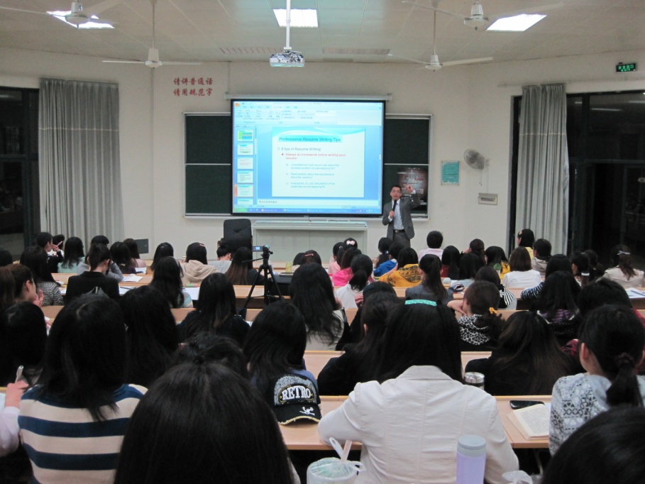 活动主要分为两大环节,首先,主讲人胥京坤为同学们讲解了简历制作的要点和注意事项。“人们不会去细读,而仅仅是浏览你的简历,”胥京坤学长说道,“因此,你要将简历当做一份自我推销的广告,而非细致全面的介绍。”虽是自我推销,胥学长也强调说,简历不能掺杂过多水分,而且要有明确的受众对象,能够告诉对方你的优势所在。对此,胥京坤从几份失败和成功的简历入手,向同学们展示了简历制作中应当避免的错误和可供借鉴的技巧。接着,胥学长总结了简历制作的经验,他表示,简历的重点不在于撰写本身,而在于前期的准备,应当充分了解公司文化、职位要求与自己的优势等;同时,细节决定成败,须格式清晰,重点突出,行间距与字体适当,一般以一页纸为主,最多两页,既充分展现自己,又不至于太过累赘;尽量在一两句话内介绍自己的优势,自身描述应当与对方要求相吻合,并且针对不同的要求对自身优势罗列进行适当排序等等。胥京坤学长在讲座的结尾告诫学弟学妹们,应当从今天起了解自己,寻求自己的职业定位,在今后的两年中,为自己日后求职丰富经验,充实简历。