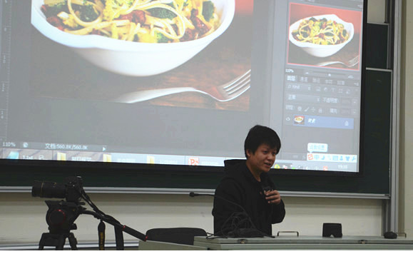 2013年11月7日晚,上海视觉艺术学院摄影系讲师、天土广告公司运营总监陈才老师受我校研会生活部的邀请到访我校,并在五教楼5264教室为我校研究生开设“第三届研究生摄影大赛—舌尖上的上海”的赛前讲座。现场气氛十分热烈。