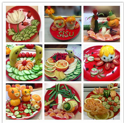 赛前,工作人员已为参赛选手们提供了苹果、香蕉、圣女果等7种水果,以及水果刀、牙签等所需用品。19:00整,在主持人介绍完大赛细则及注意事项之后,比赛开始。比赛一开始,同学们就大显身手,按照自己设计好的图案及形状进行摆放,同学们有的想创意,有的切水果、摆造型,完全融入到了活动中。参加水果拼盘大赛的19组同学用相同水果拼凑出了形态各异,意义不同的水果拼盘,充分展示了上外研究生的精良创意和细心巧手。
