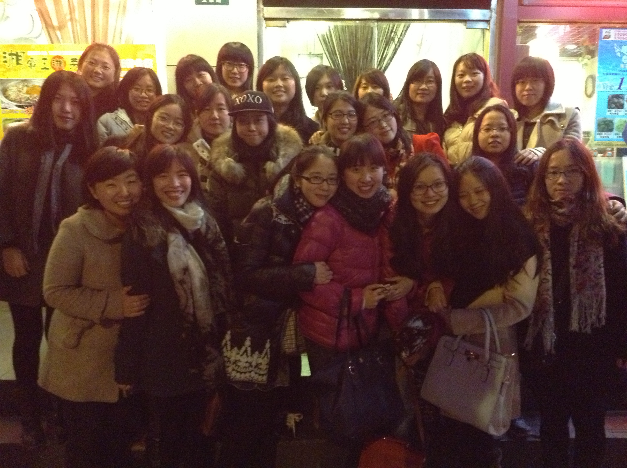 十几个菜一下子就被大家一扫而光,饭后大家先自己组团拍照纪念,然后所有同学来到了餐厅门口拍照留念,记下这极具意义的一天。虽然开题报告答辩圆满结束了,但这对于我们来说仅仅是一个新的开始。预祝大家圣诞快乐、新年快乐!在新的一年顺利完成论文,找到自己喜欢的工作! (文/晏子,图/樊悦)