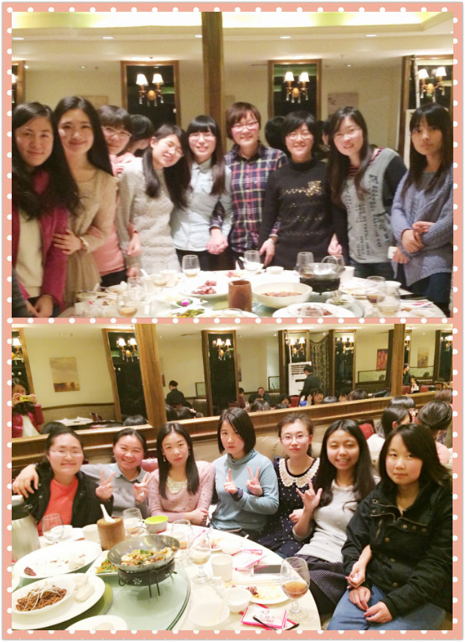 而另外两桌清一色都是妹子。不过虽然都是妹子,气氛依旧很热烈,且活跃程度并不逊于上面一桌。笔译的姑娘都才思敏捷、能说会道,颇有自己的想法。而且因为一直以来同学们都保持着很好的联系,所以彼此之间有很多说不完的共同话题。
