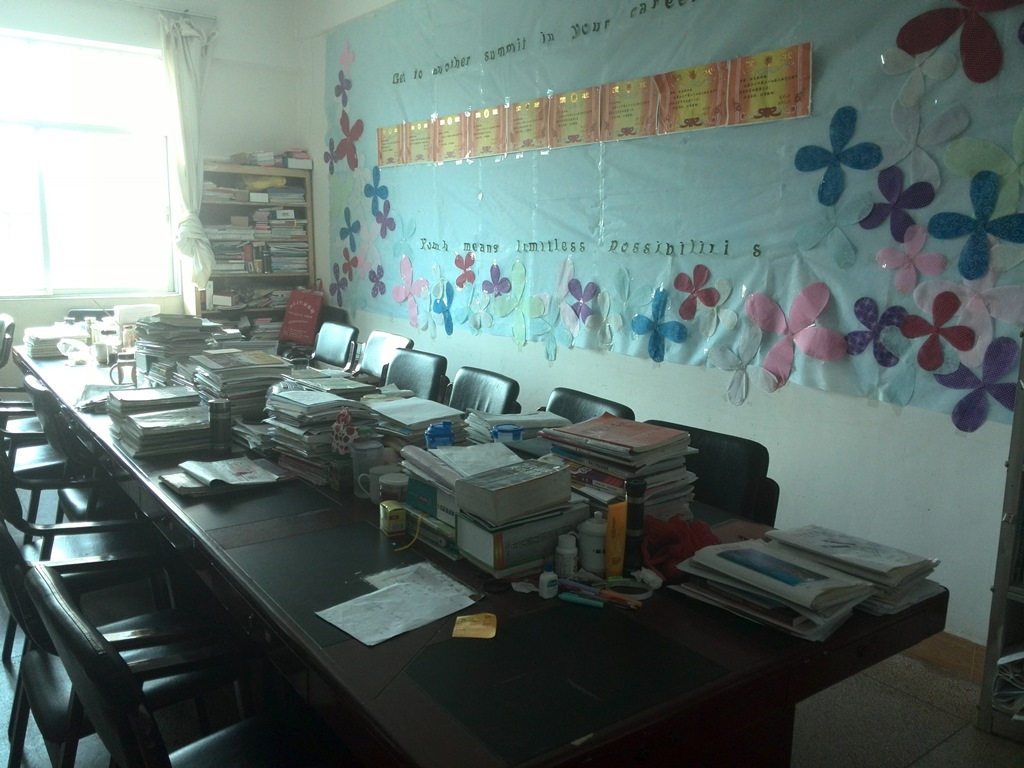 在向老师学习的同时,我和金鸾同学也尽可能地将自己的所长发挥出来。我们与当地老师分享课件制作的点滴心得,交流各款教学辅助软件功用。在平日的聊天中,我们也会分享自己所见所闻的先进教学方法并共同探讨是否能通过适当修改在墨江二中加以实践。此外,金鸾和我在办公室建起了图书角并倡议老师能分享图书,互相交流学习。