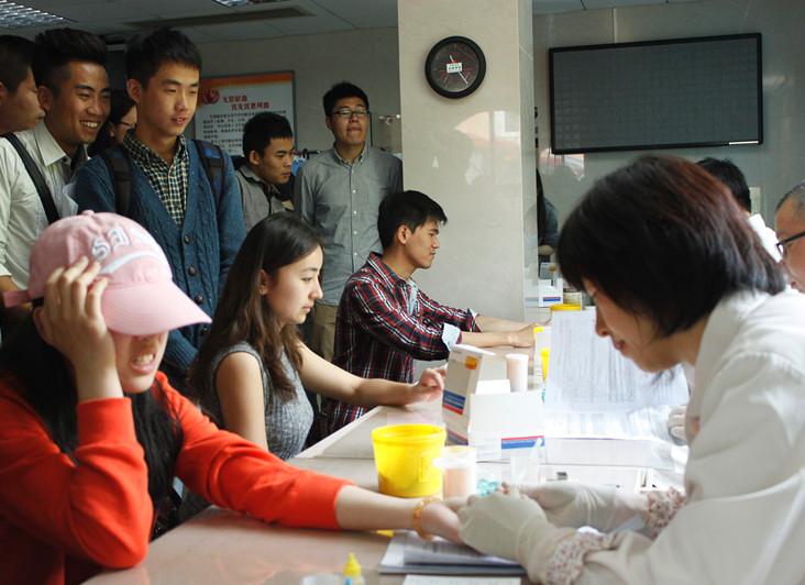 “本来我一点都不紧张的,结果一进来,看到这门多检验程序,尤其是看到验血的针头,我现在好紧张。”2013级4班的阿依仙在等待验血时面露忐忑:“尤其是刚才看到有同学献完血之后晕倒了,我心现在砰砰直跳。我还一直和同班来的男生说,如果我等会晕倒了,一定要扶我。”