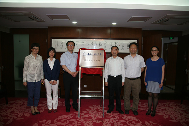 会谈后冯庆华副校长和徐华东主任共同签署了研究生实习基地协议,并为上海外国语大学研究生实习基地揭牌。