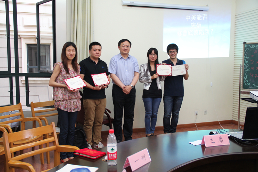 最终获胜的小组为正方小组,其成员为:一辩程天翔(研一)、二辩陈烨(研一)、三辩沈贇璐(研一)、四辩杨洁(研二)。本届辩论赛的最佳辩手为:田宁(研二)、沈贇璐(研一)、吴家斌(研一)、丁梦丽同学(研一),由院领导和老师分别为他们颁发了获奖证书,并合影留念。