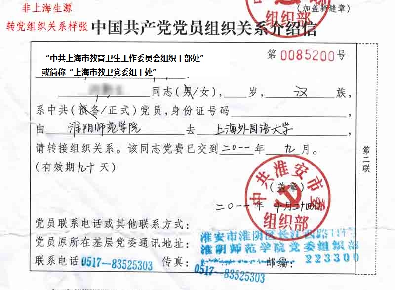 转党组织关系介绍信样张