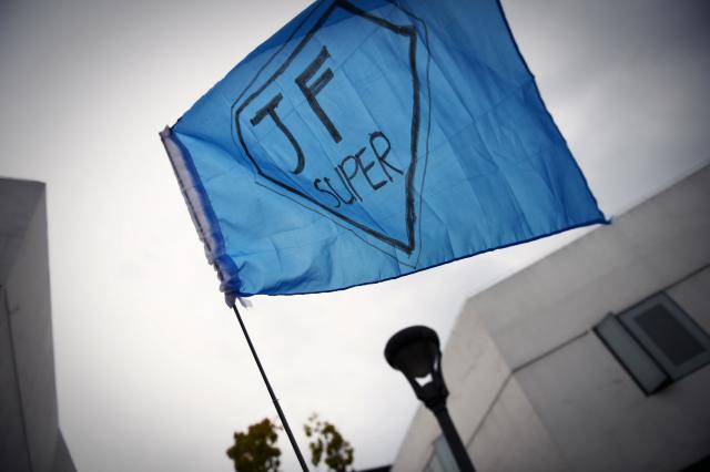 经过两组成员短暂的磋商,队名、队歌、队长、队秘、口号均尘埃落定。以外联部副部长黄捷同学为首的“不二”队高喊“不二不二,独一无二”的响亮口号,迅速进入“备战”状态。而以体育部副部长王吉辰同学为首的“飓风超人”队也不甘示弱,雄纠纠气昂昂,吹响“飓风超人,无所不能”的战斗号角。标有“JF Super”和“不二”字样的蓝绿战旗迎风飘扬,两支队伍摩拳擦掌,对抗训练一触即发。