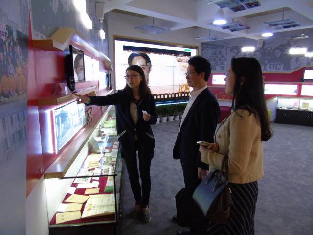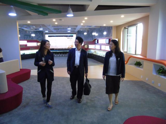 下午,上外一行抵达甘泉外国语中学后首先参观了上海市多语种考试评价中心、“我的甘泉”课程学习体验中心、“读懂中国”国学文化特色体验馆等多元教学实践场所。在工作人员的引导下,查明建主任详细了解了各项设施功能与课程实践情况,并亲自体验了在线校本课程。查明建主任高度评价了甘泉外国语中学崇礼尊德的育人理念和以学生发展为中心的创新实践。
