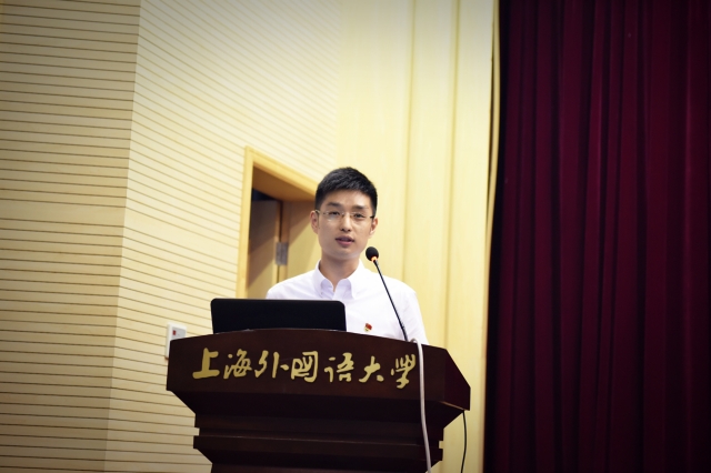 随后,研究生部党总支副书记田老师为全体毕业生党员上了离校前的最后一堂党课。他以“上外毕业生党员——永远铭刻在心的坐标”为题,亲切的话语发自肺腑,谆谆的嘱托传至每一位党员学子的心头。田老师从五个方面,对毕业研究生党员提出了要求和建议: