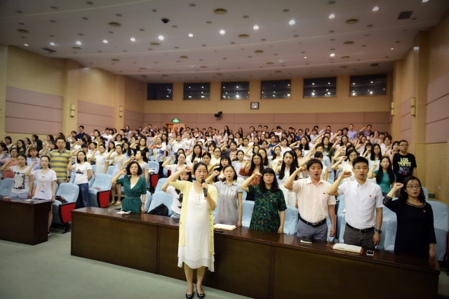 夏日已至,万物丰茂,葱茏的上外校园又有一批学子将要毕业,踏上新的征程。6月22日下午,2016届夏季毕业研究生党员大会在虹口校区第一报告厅举行。党委组织部纪翔老师、研究生部党总支书记杨雪莲老师、副书记田老师、学生管理办公室丁娟老师、盛攀峰老师,以及全体2016届夏季毕业研究生党员参加了此次大会,会议由张艳老师主持。