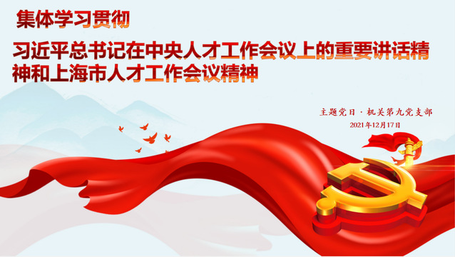 集体学习贯彻习近平总书记在中央人才工作会议上的重要讲话精神和上海市人才工作会议精神——机关第九党支部12月主题党日