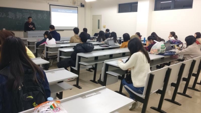 20161031日晚上六点,博士沙龙第22期静湖读书会在我校松江校区4314教室举行。本期邀请到的嘉宾是我校语言研究院2016级硕士生叶子同学。叶同学本科期间就读于同济大学土木工程专业,从大二开始热衷于保护其母语吴语上海市区方言,接触语言学后对本体研究产生兴趣,遂保研进入我校语言研究院外应专业。