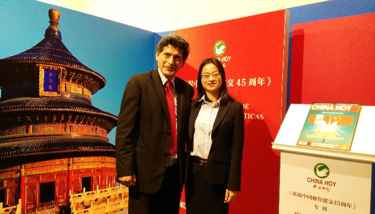 2016年11月20日方卉在《今日中国》中秘建交45周年纪念特刊发行仪式后留影纪念