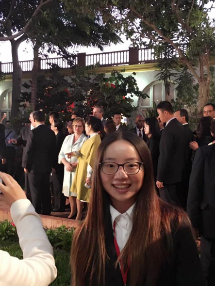 最后记者采访雨珊,活动结束了有什么感受,雨珊说:“为团队的每一位成员也为我自己骄傲,工作很辛苦,但是我们顺利圆满地完成了任务!通过这次高访接待活动,我也学到了很多东西:如何举办一场活动,怎样把活动做得更好等等,同时我自己也成长了很多,变得更加成熟、有条理、自信!当然啦,非常开心能够见到习大大彭麻麻,我还在新闻联播上出现了两秒呢!”