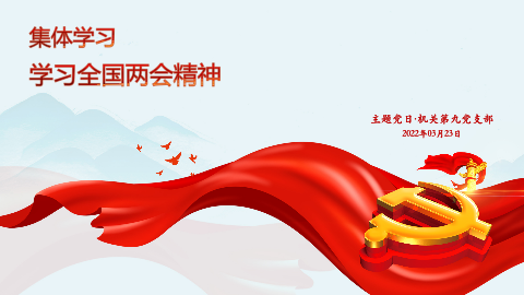 2022年3月23日机关第九党支部组织三月主题党日活动,本次主题党日活动的主题为:“全面深入领会两会精神,喜迎二十大召开”。支部书记赵蓉晖同志主持,支部委员肖琳同志领学,支部党员代表交流发言。按照上海市疫情期间居家办公要求,本次支部活动通过腾讯会议在线开展。