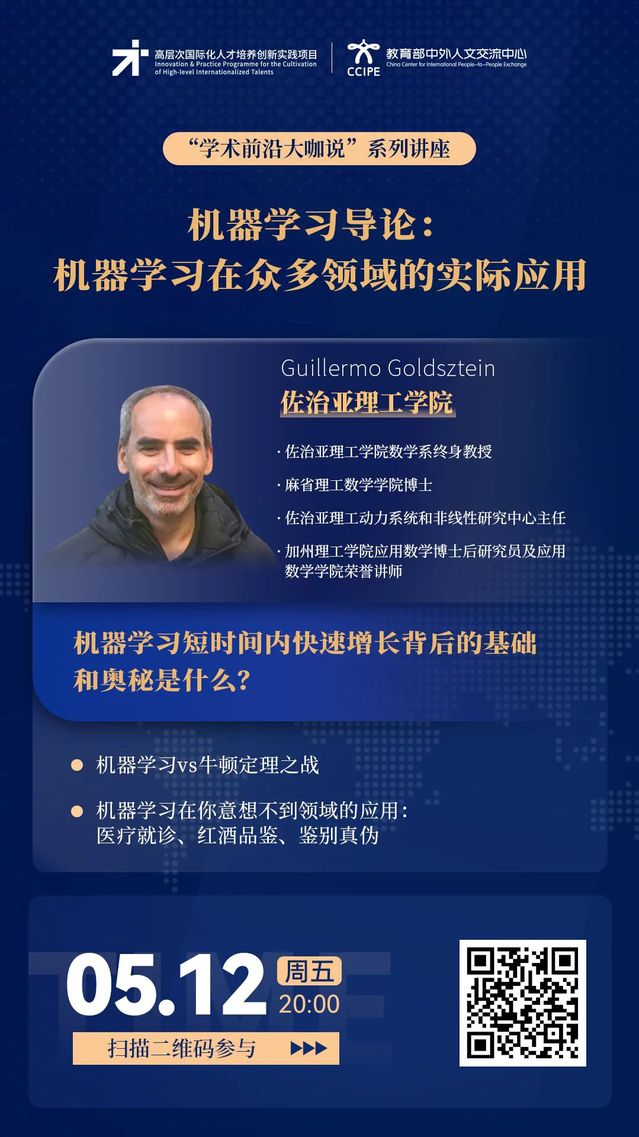 学术前沿大咖说 | 机器学习导论:机器学习在众多领域的实际应用(5月12日20:00,主讲人Guillermo Goldsztein)