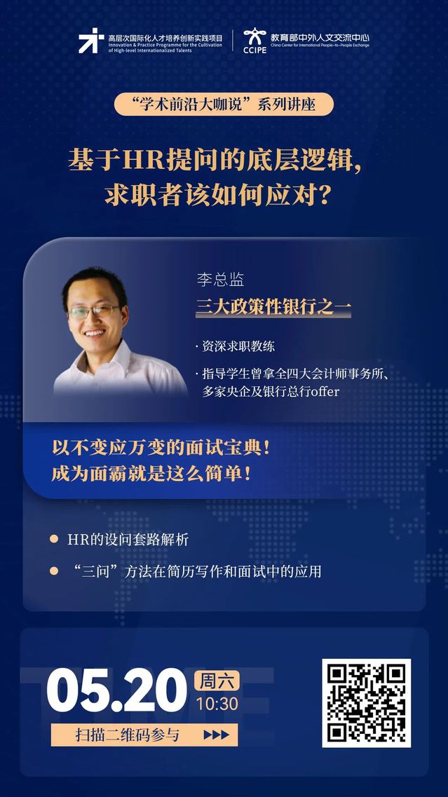 学术前沿大咖说 | 基于HR提问的底层逻辑,求职者该如何应对? (5月20日10:30,主讲人:李总监)