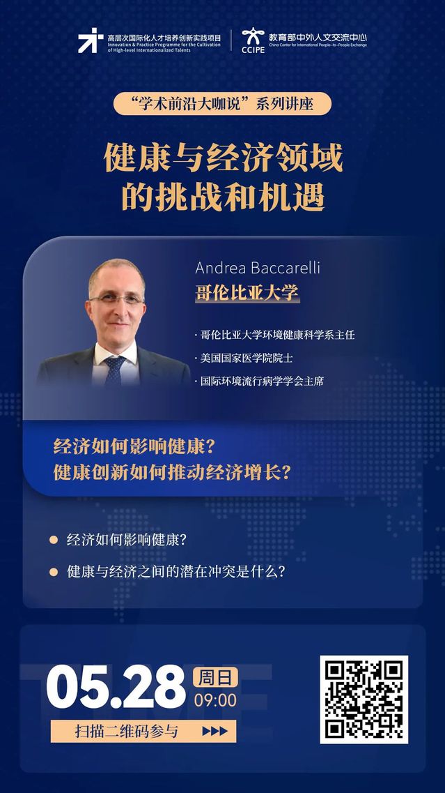 学术前沿大咖说 |  健康与经济领域的挑战和机遇(5月28日9:00,主讲人:Andrea Baccarelli)