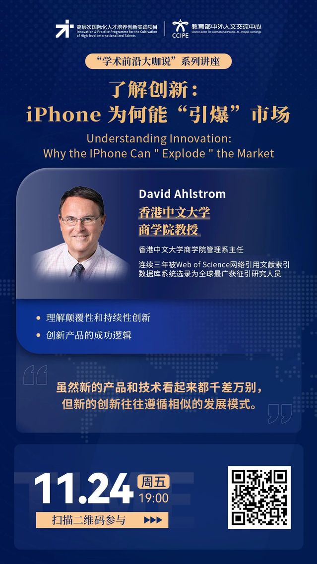 学术前沿大咖说 | 了解创新:iPhone 为何能“引爆”市场(11月24日19:00,主讲人:David Ahlstrom)