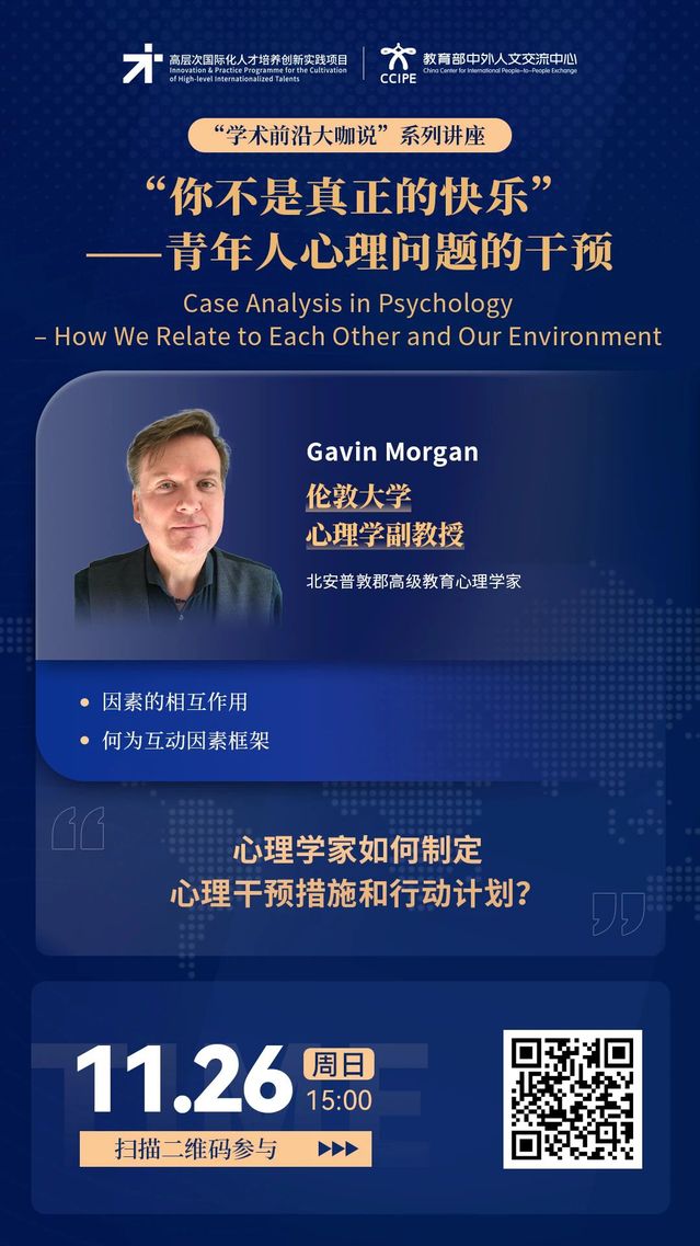 学术前沿大咖说 | “你不是真正的快乐”——青年人心理问题的干预(11月26日15:00,主讲人:Gavin Morgan)