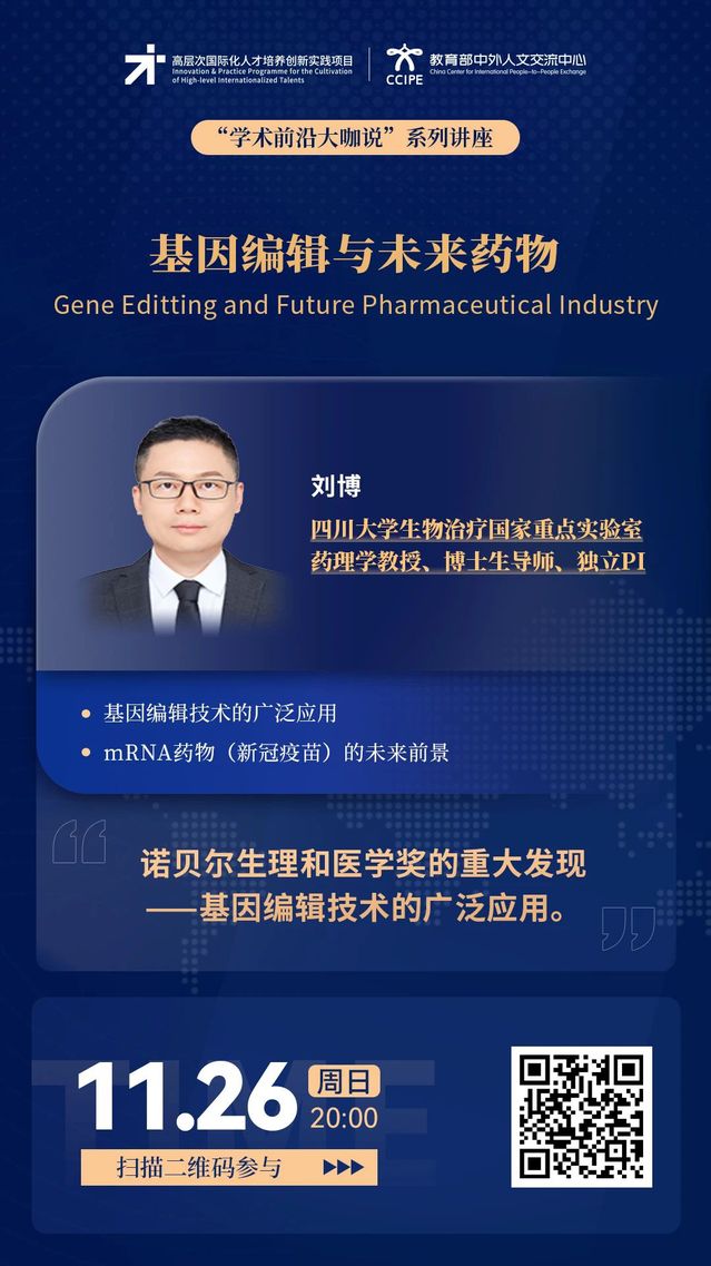 学术前沿大咖说 | 基因编辑与未来药物(11月26日20:00,主讲人:刘博)