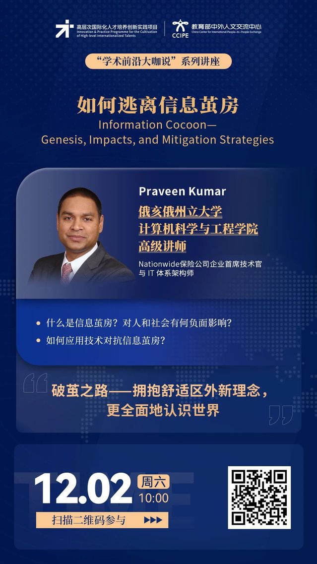 学术前沿大咖说 | 如何逃离信息茧房(12月2日10:00,主讲人:Praveen Kumar)