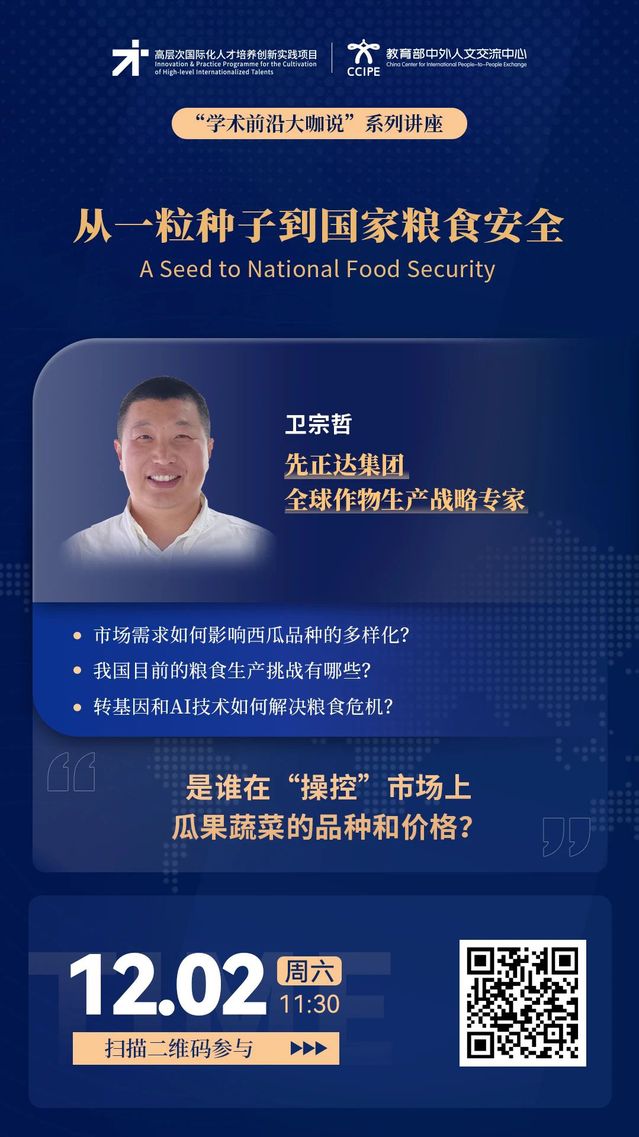 学术前沿大咖说 | 从一粒种子到国家粮食安全(12月2日11:30,主讲人:卫宗哲)