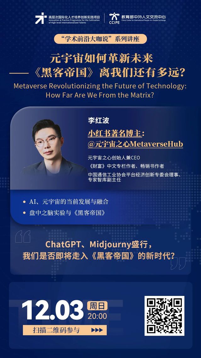 学术前沿大咖说 | 元宇宙如何革新未来——《黑客帝国》离我们还有多远?(12月3日20:00,主讲人:李红波)