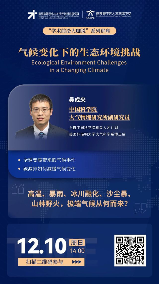 学术前沿大咖说 | 气候变化下的生态环境挑战(12月10日14:00,主讲人:吴成来)