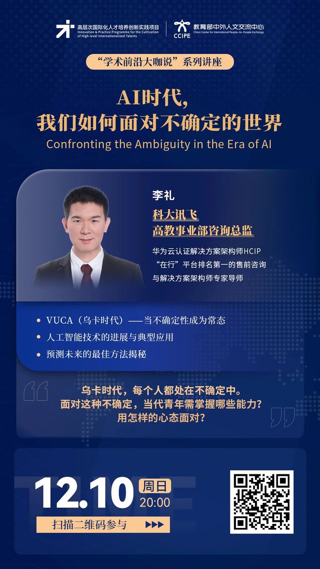 学术前沿大咖说 | AI时代,我们如何面对不确定的世界(12月10日20:00,主讲人:李礼)