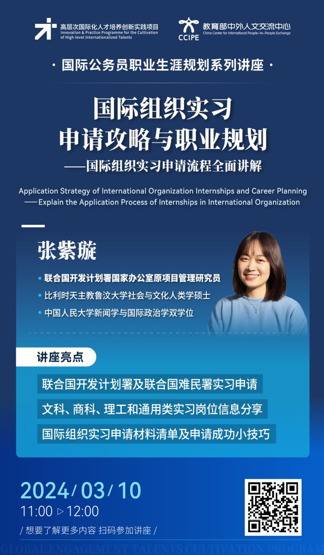 国际公务员职业生涯规划讲座 | 国际组织实习申请攻略与职业规划——国际组织实习申请流程全面讲解(3月10日11:00,主讲人:张紫璇)