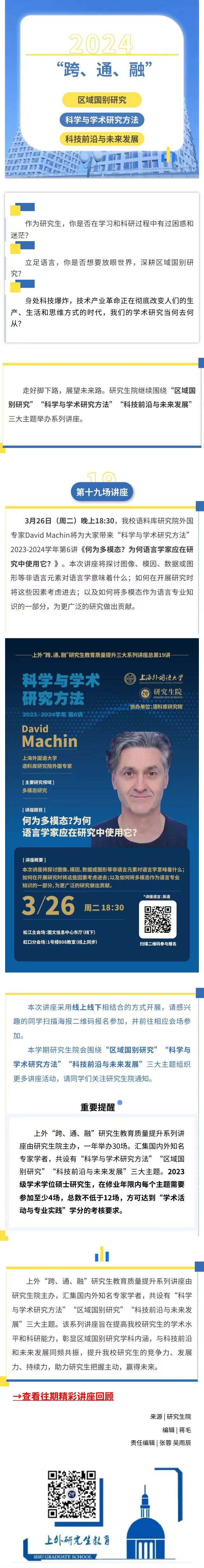 上外“跨、通、融”研究生教育质量提升 三大系列讲座第十九场讲座开启报名