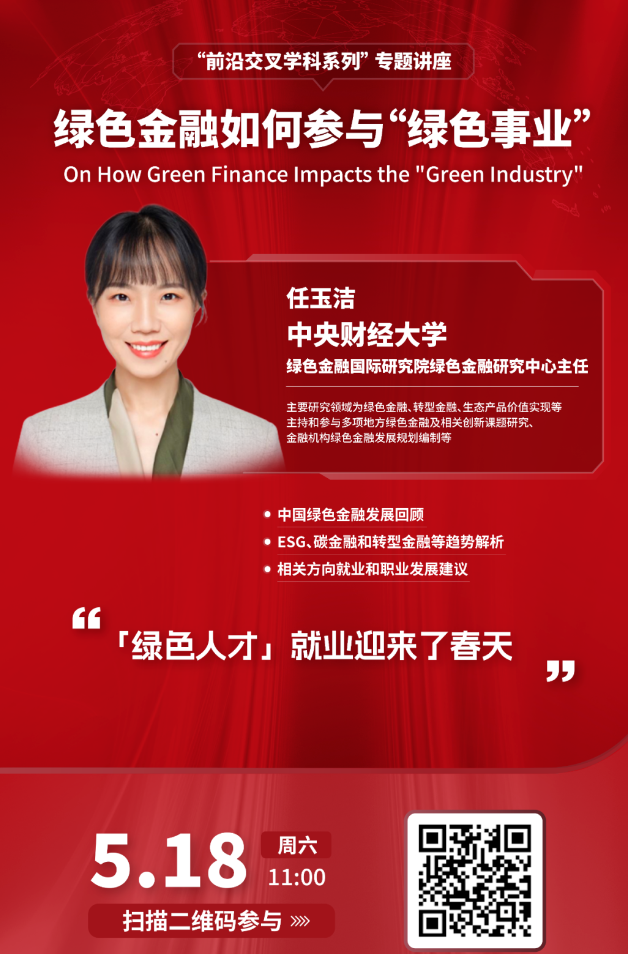 学术前沿大咖说 | 绿色金融如何参与“绿色事业”(2024年5月18日 11:00-12:00,主讲人:任玉洁)