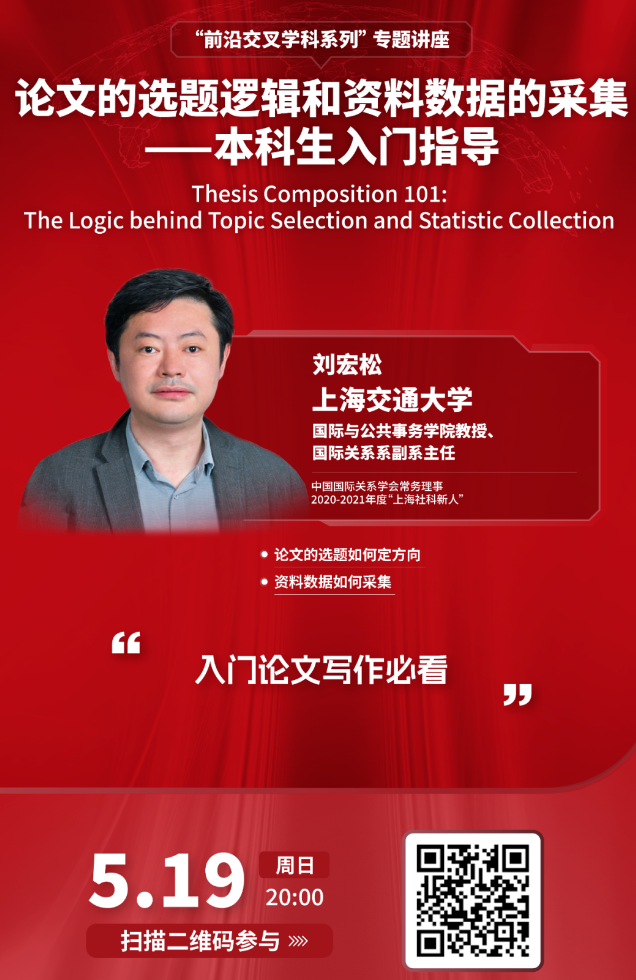 学术前沿大咖说 | 论文的选题逻辑和资料数据的采集——本科生入门指导(2024年5月19日 20:00-21:00,主讲人:刘宏松)