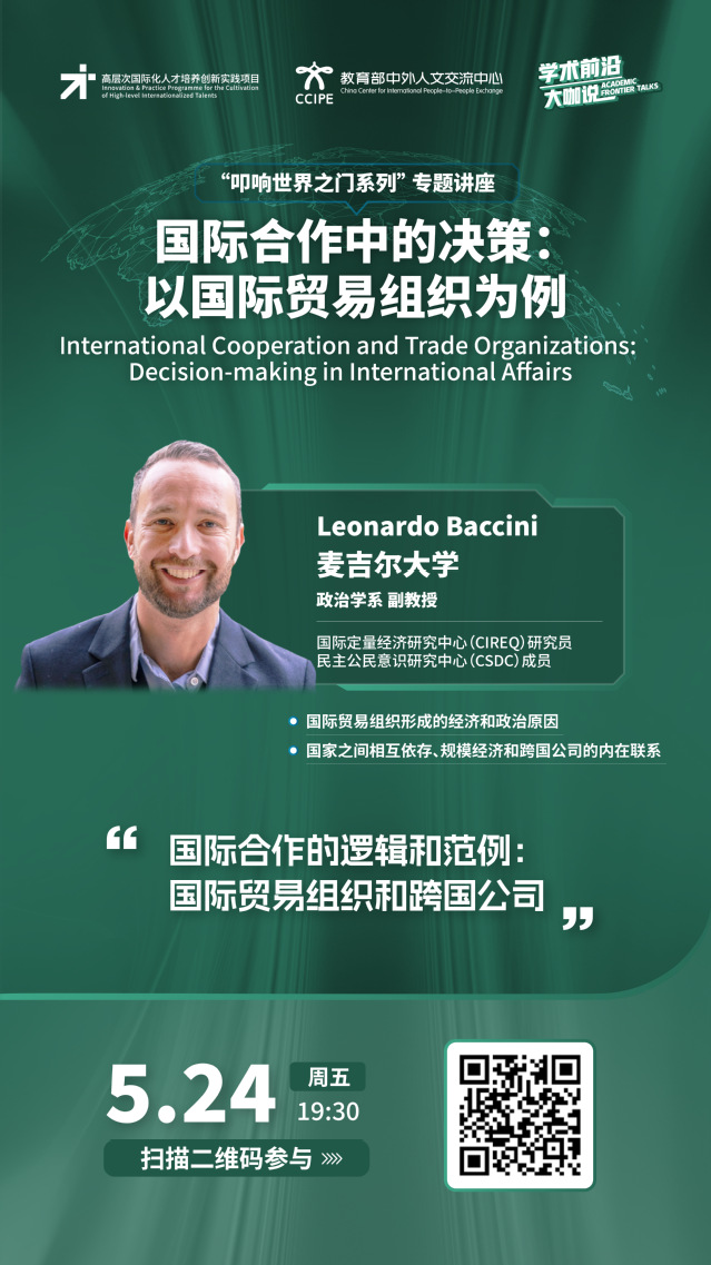 学术前沿大咖说 | 国际合作中的决策:以国际贸易组织为例(2024年5月24日 19:30-20:30,主讲人:Leonardo Baccini)