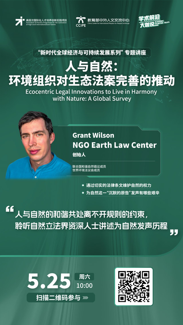 学术前沿大咖说 | 人与自然:环境组织对生态法案完善的推动(2024年5月25日 10:00-11:00,主讲人:Grant Wilson)