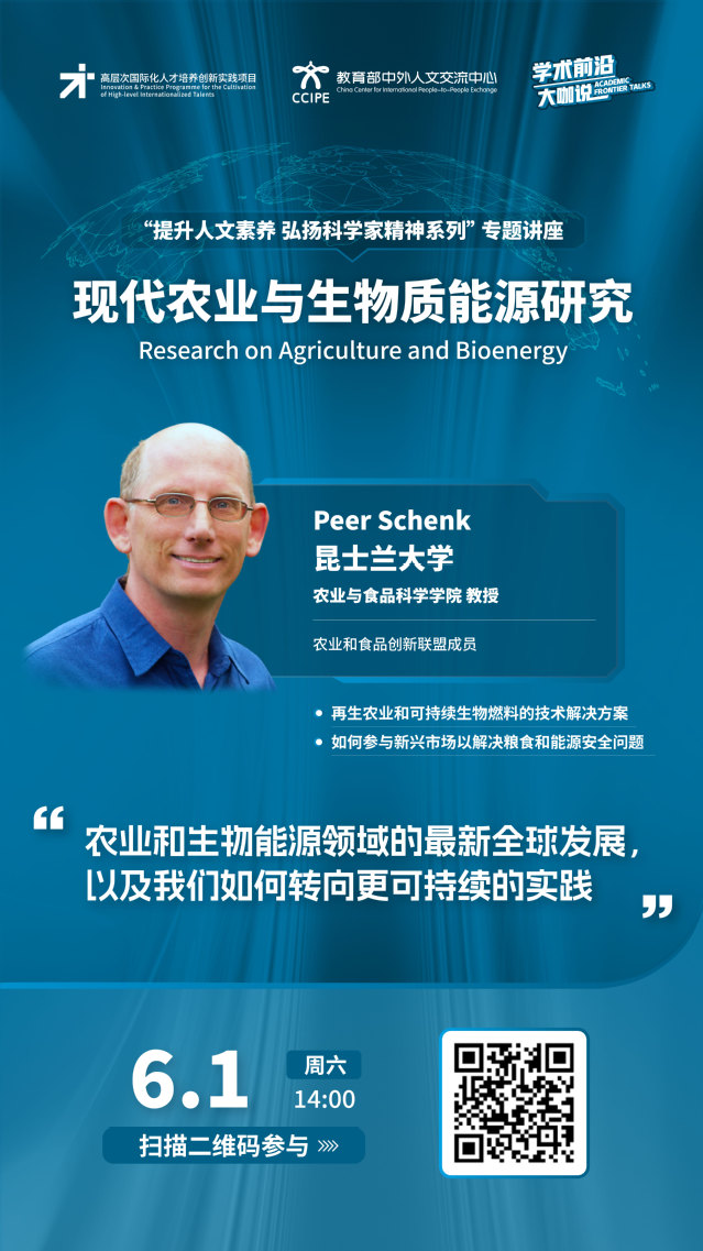 学术前沿大咖说 | 现代农业与生物质能源研究(2024年6月1日 14:00-15:00,主讲人:Peer Schenk)