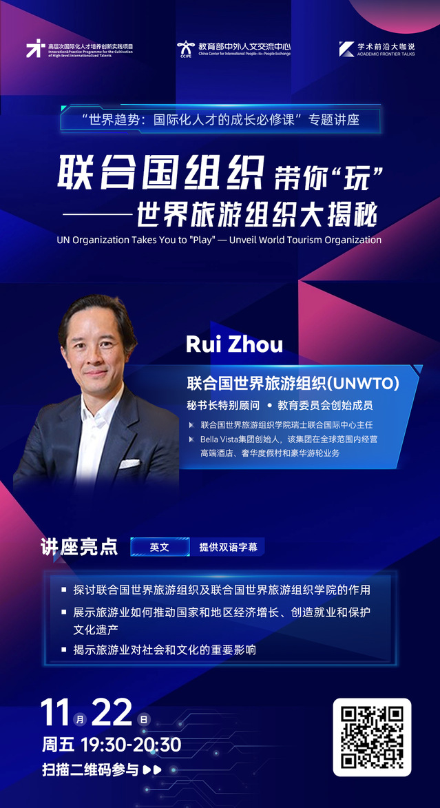 学术前沿大咖说 | 联合国组织带你“玩”——世界旅游组织大揭秘(2024年11月22日 19:30-20:30,主讲人:Rui Zhou)
