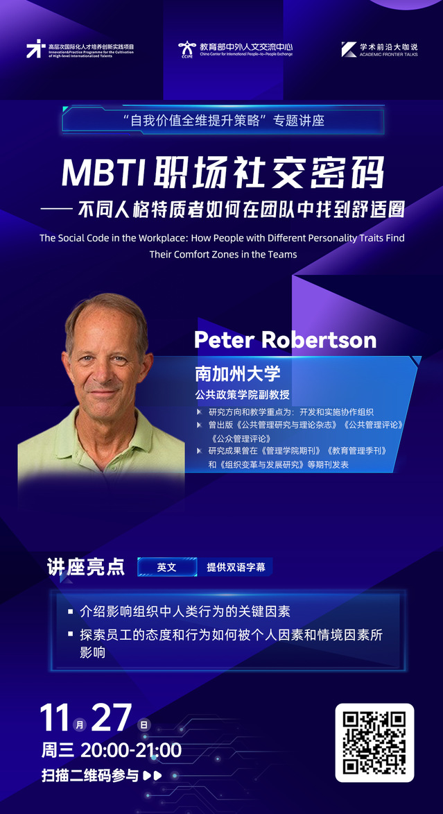 学术前沿大咖说 | MBTI职场社交密码(2024年11月27日 20:00-21:00,主讲人:Peter Robertson)