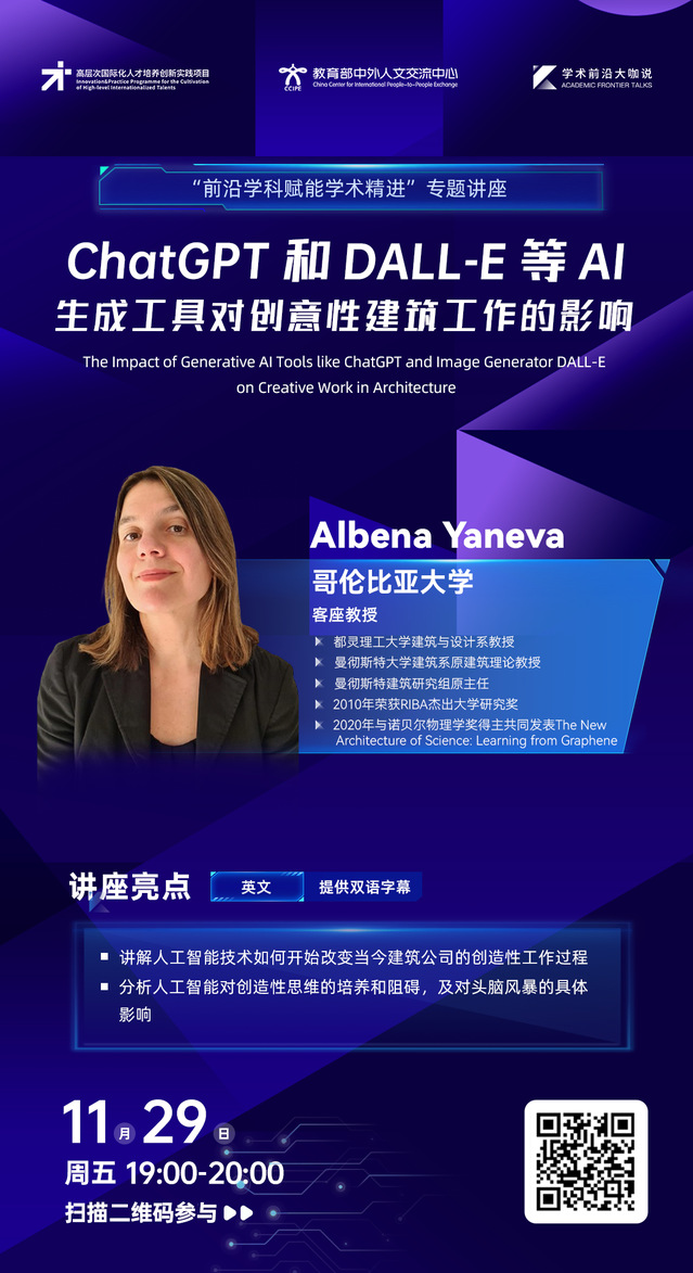 学术前沿大咖说 | chatGPT和DALL-E等AI生成工具对创意性建筑工作的影响(2024年11月29日 19:00-20:00,主讲人:Albena Yaneva)