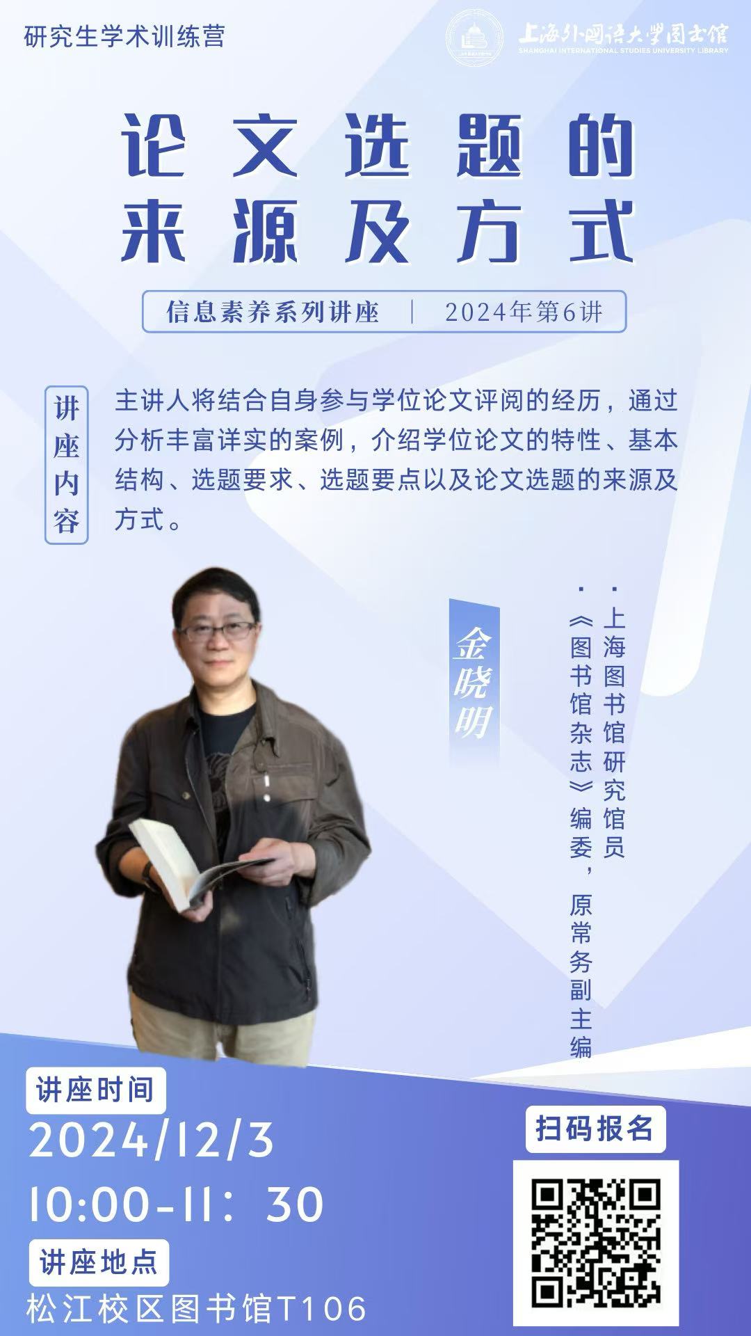 讲座地点松江校区图书馆T106